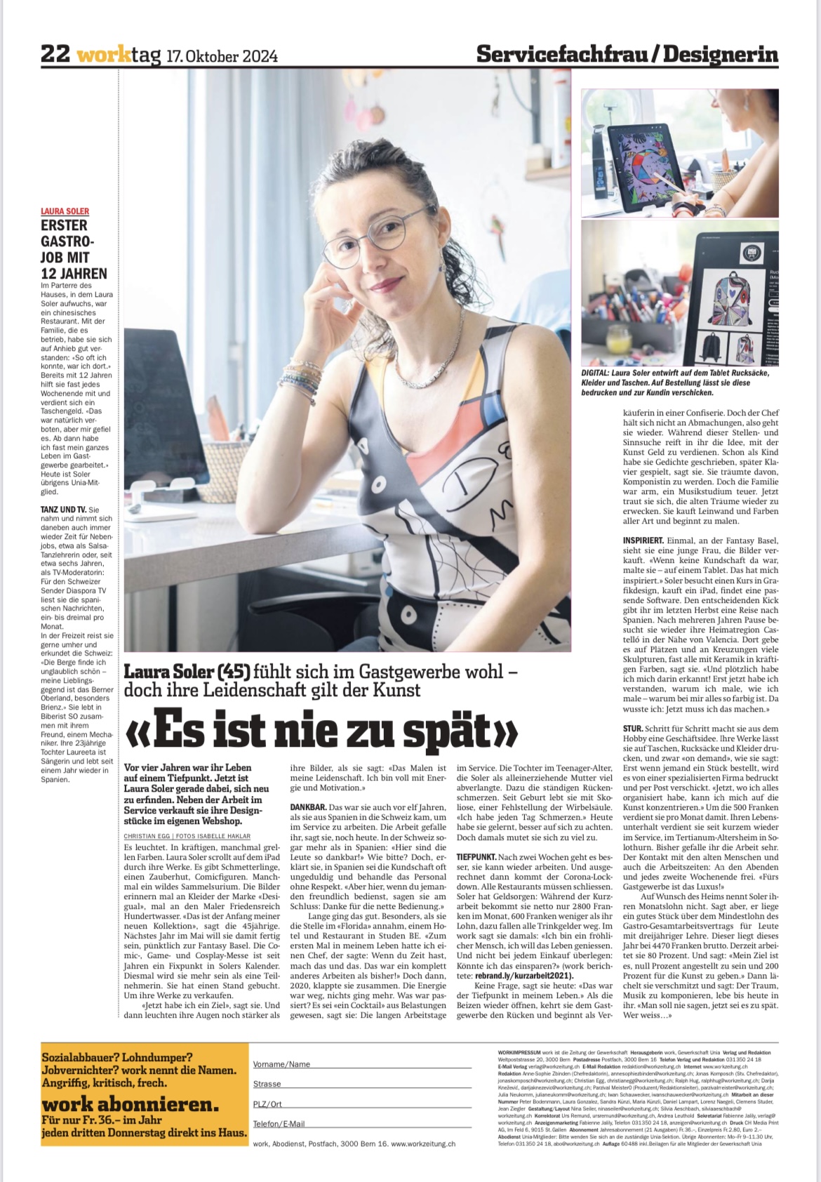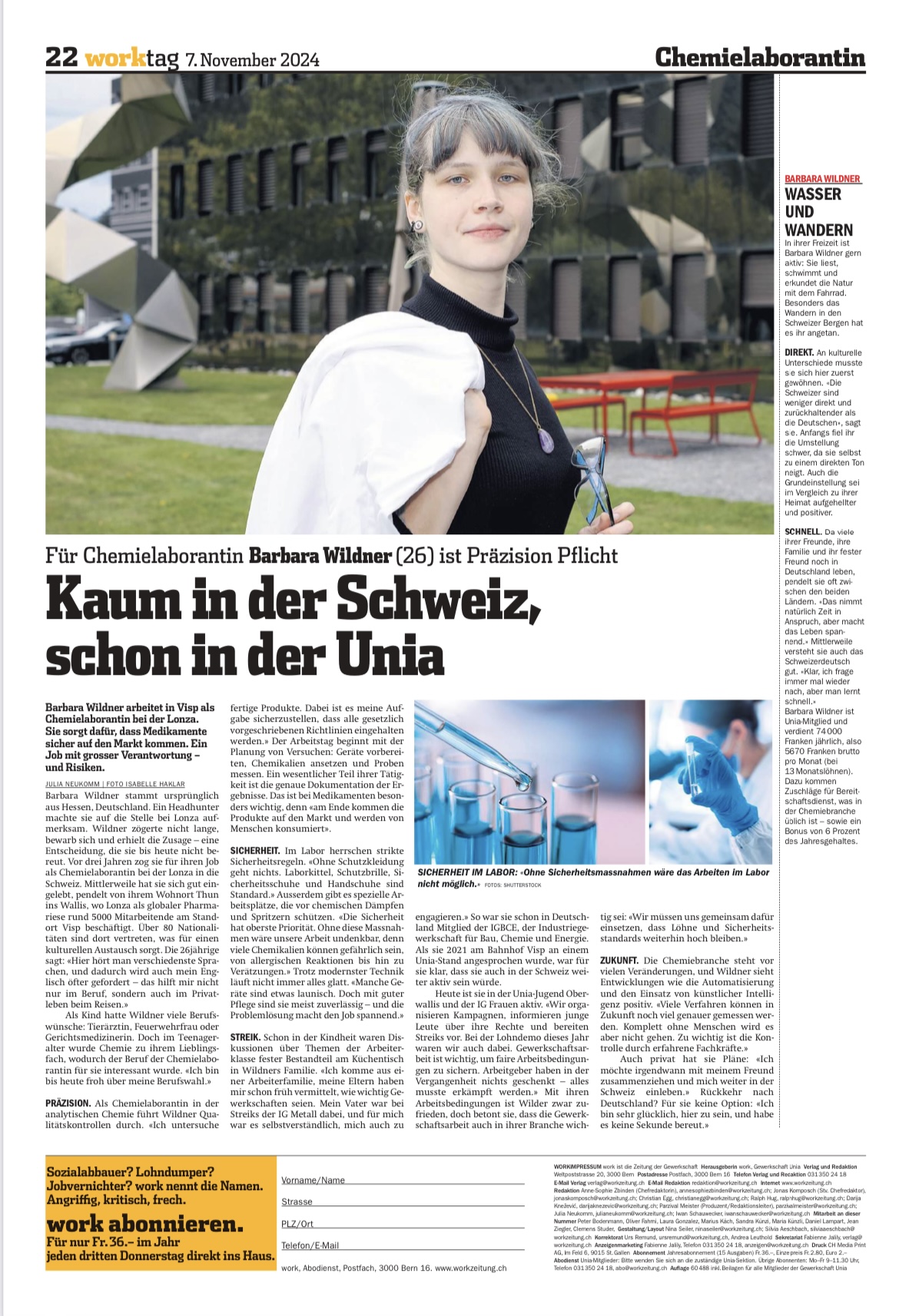 Portrait für die <work>, Gewerkschaftszeitung der UNIA, 7.November 2024 - print & online ( -> Zum Artikel )